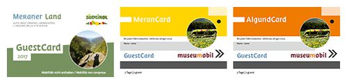 Die Leistungen der GuestCard können mit den folgenden Karten in Anspruch genommen werden: der GuestCard sowie der MeranCard und der AlgundCard.